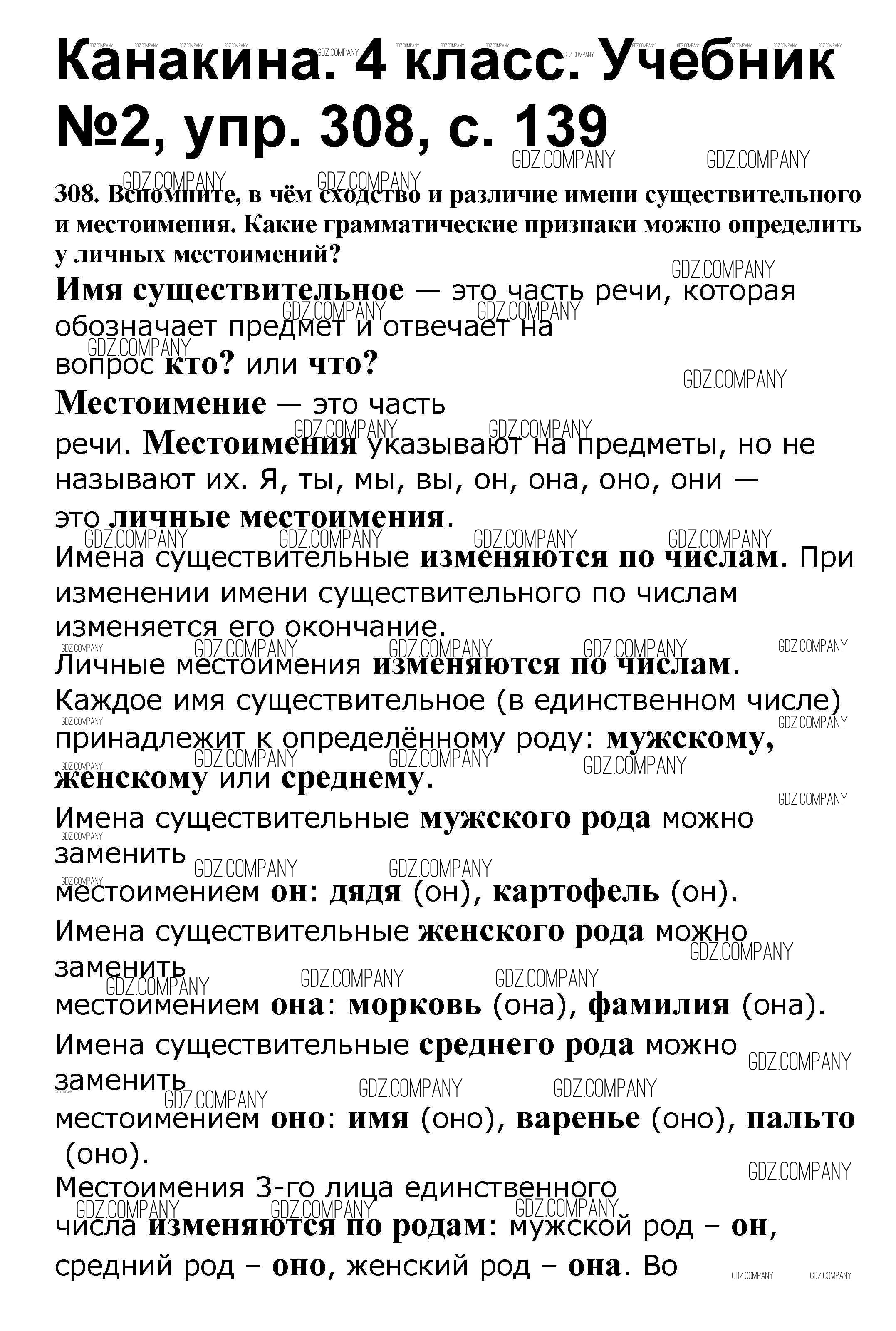 Здесь готовые ответы по Русскому языку за 4 (четвертый) класс от Канакина, Горецкий Учебник Школа России (издательство: Просвещение от 2015 г.) № 308