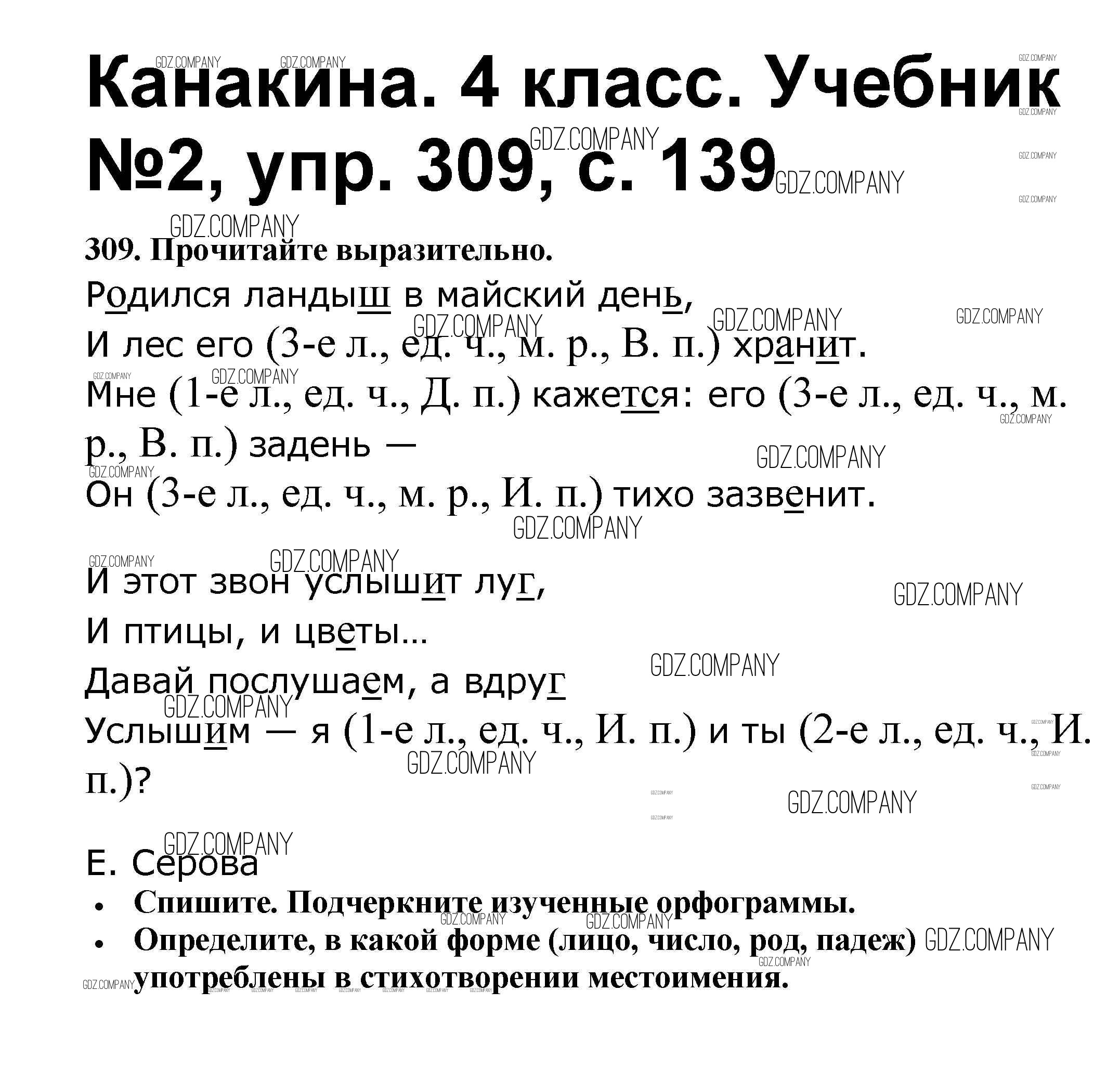 Здесь готовые ответы по Русскому языку за 4 (четвертый) класс от Канакина, Горецкий Учебник Школа России (издательство: Просвещение от 2015 г.) № 309