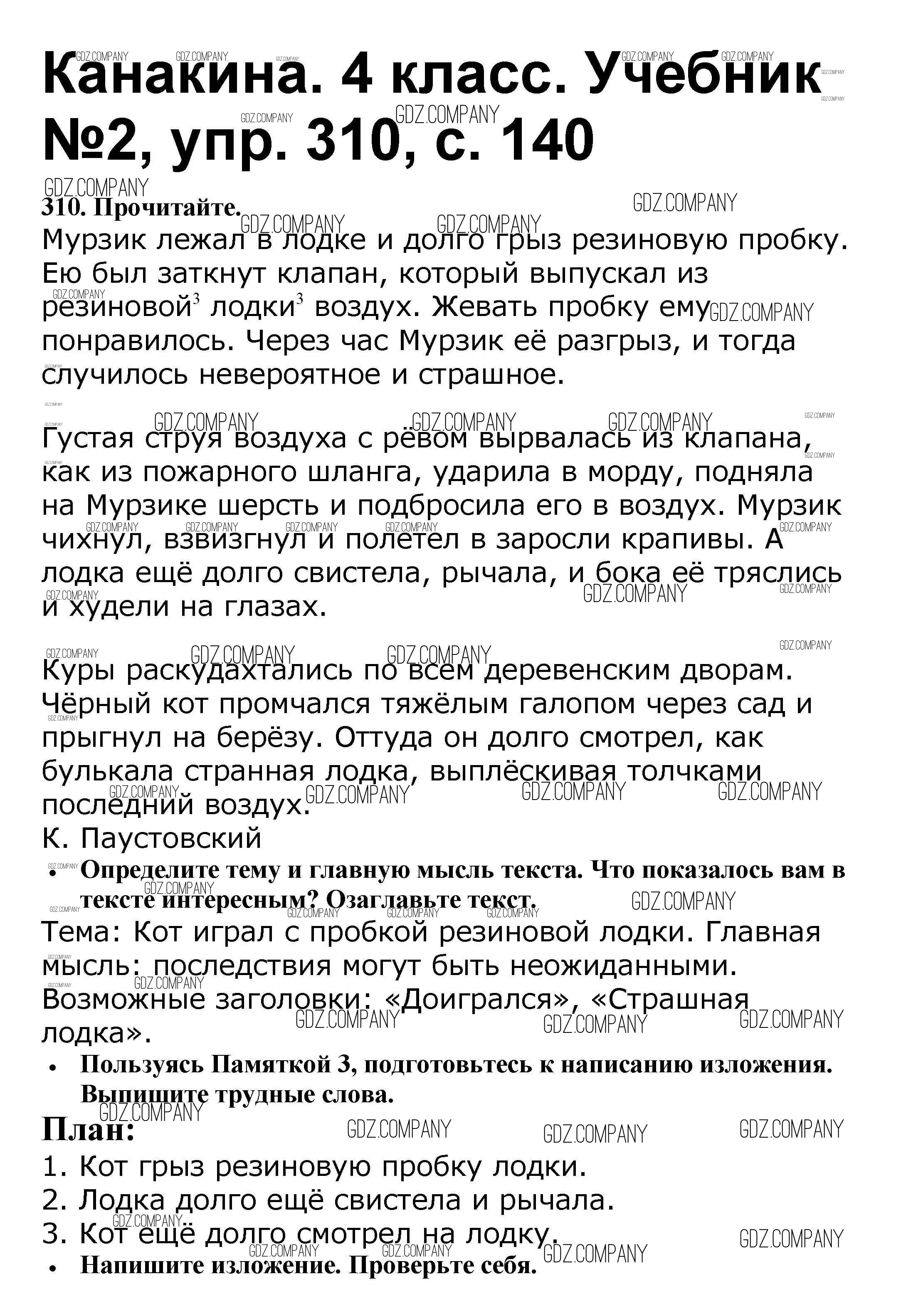 Здесь готовые ответы по Русскому языку за 4 (четвертый) класс от Канакина, Горецкий Учебник Школа России (издательство: Просвещение от 2015 г.) № 310