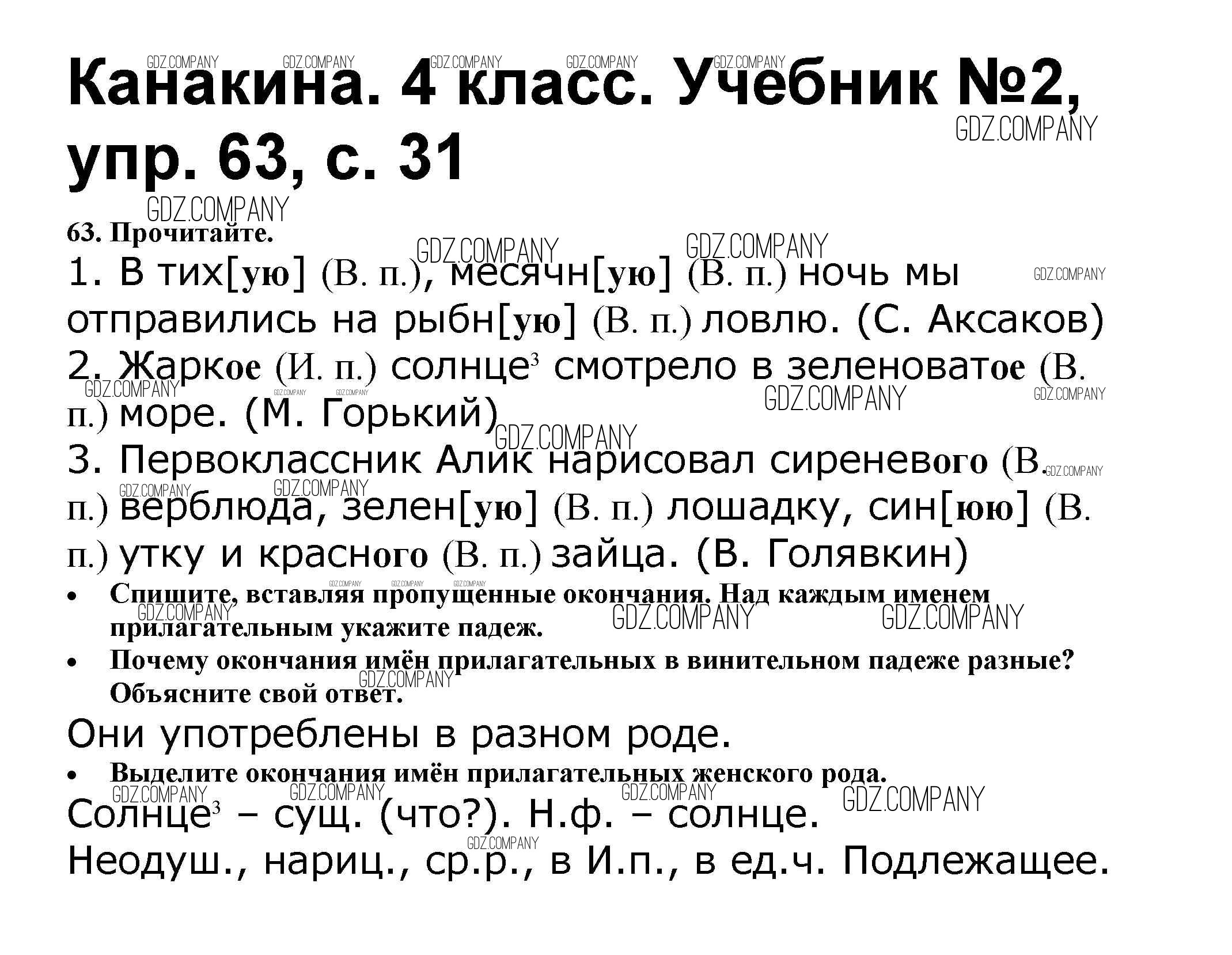 Здесь готовые ответы по Русскому языку за 4 (четвертый) класс от Канакина, Горецкий Учебник Школа России (издательство: Просвещение от 2015 г.) № 63