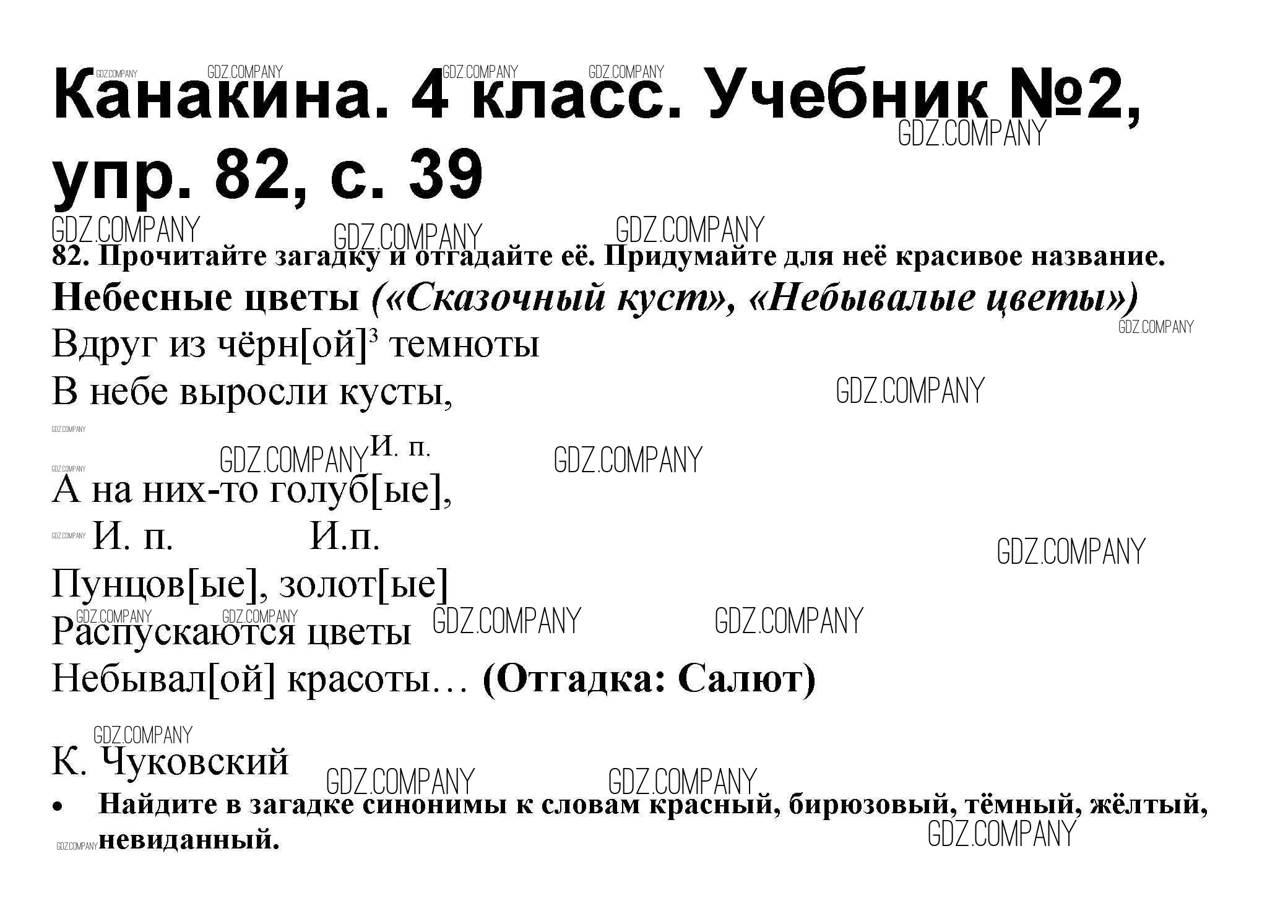 Здесь готовые ответы по Русскому языку за 4 (четвертый) класс от Канакина, Горецкий Учебник Школа России (издательство: Просвещение от 2015 г.) № 82