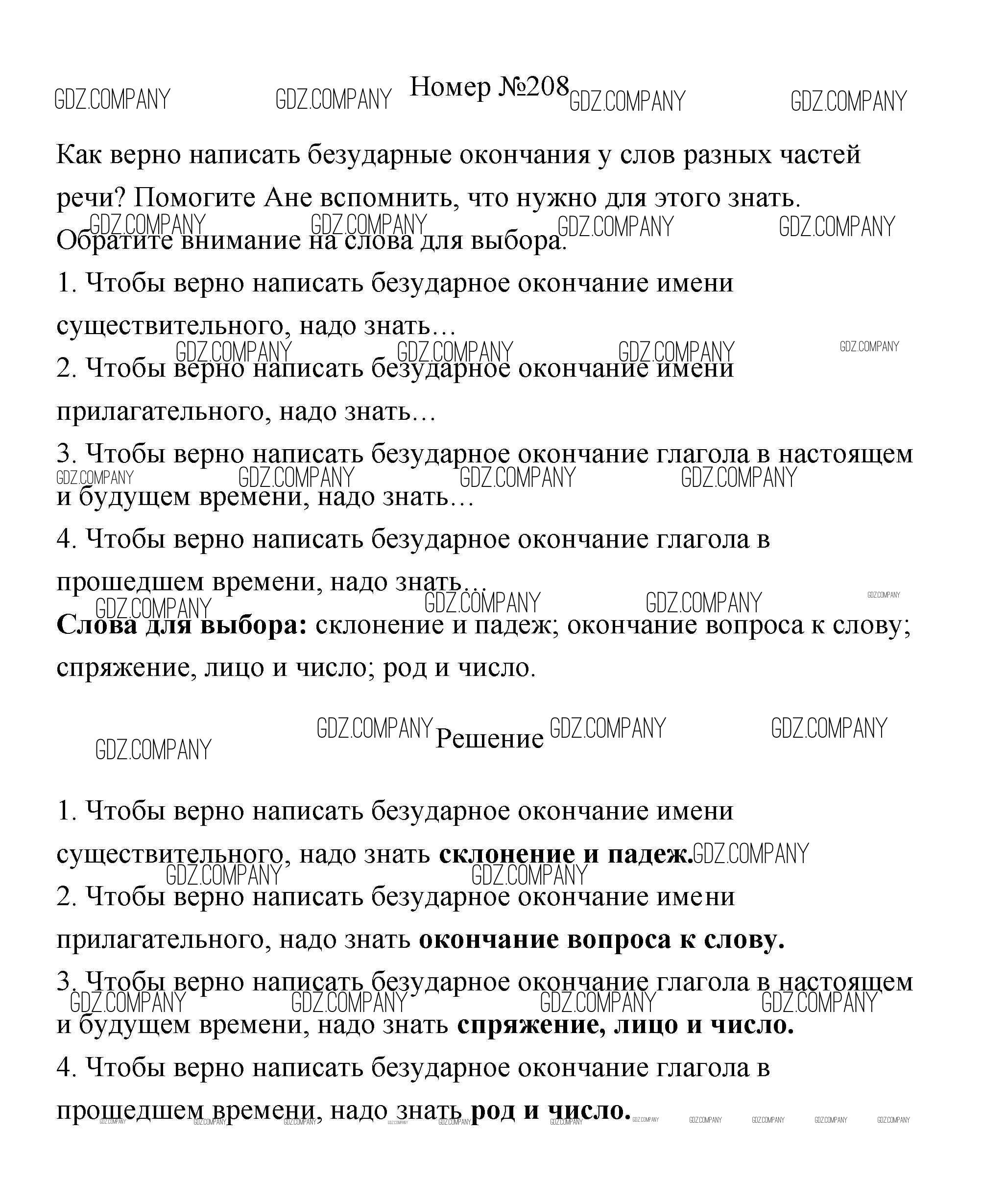 Здесь готовые ответы по Русскому языку за 4 (четвертый) класс от Климанова, Бабушкина Учебник Перспектива (издательство: Просвещение от 2014 г.) № 208