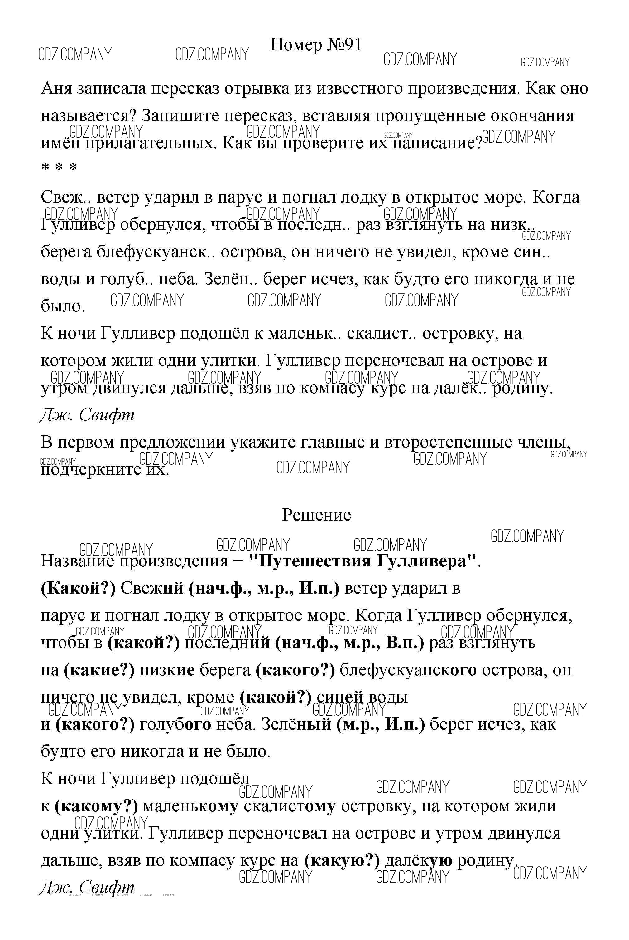 Здесь готовые ответы по Русскому языку за 4 (четвертый) класс от Климанова, Бабушкина Учебник Перспектива (издательство: Просвещение от 2014 г.) № 91