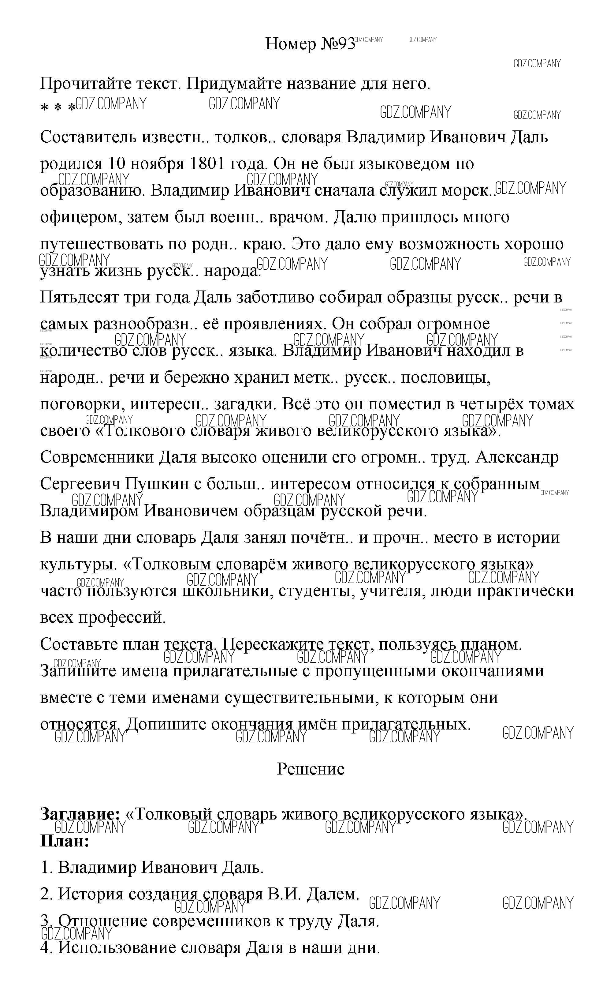 Здесь готовые ответы по Русскому языку за 4 (четвертый) класс от Климанова, Бабушкина Учебник Перспектива (издательство: Просвещение от 2014 г.) № 93