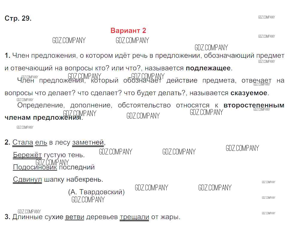 Здесь готовые ответы по Русскому языку за 4 (четвертый) класс от Крылова Контрольные работы УМК (издательство: Экзамен от 2015 г.) № 29