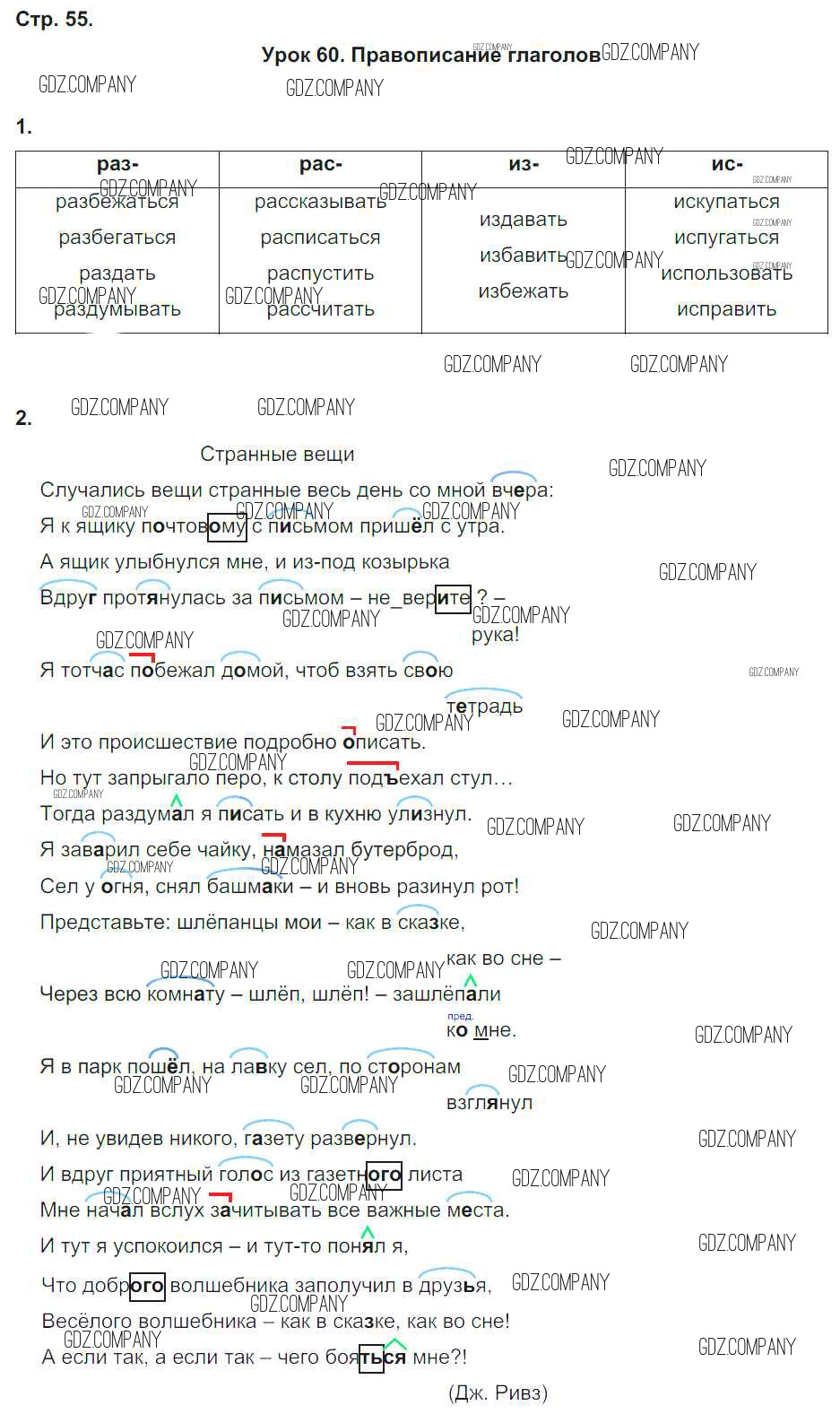 Здесь готовые ответы по Русскому языку за 4 (четвертый) класс от Кузнецова Рабочая тетрадь Начальная школа XXI века (издательство: Вентана-граф от 2018 г.) № 55