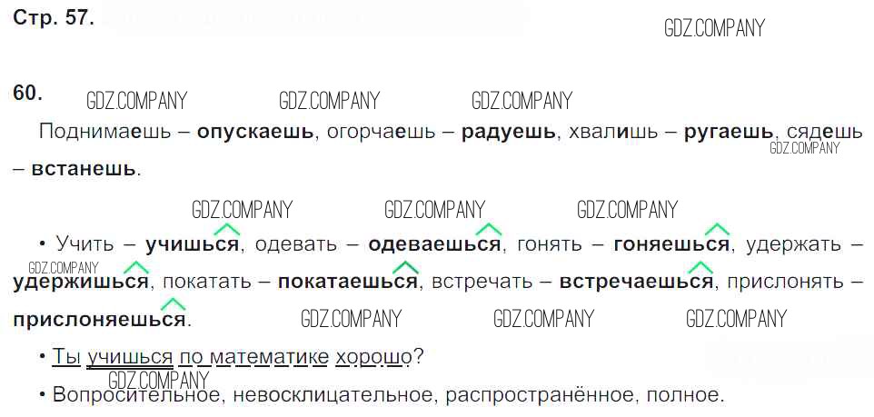 Здесь готовые ответы по Русскому языку за 4 (четвертый) класс от Песняева, Анащенкова Рабочая тетрадь УМК (издательство: Просвещение от 2017 г.) № 57