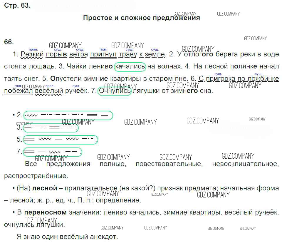 Здесь готовые ответы по Русскому языку за 4 (четвертый) класс от Песняева, Анащенкова Рабочая тетрадь УМК (издательство: Просвещение от 2017 г.) № 63