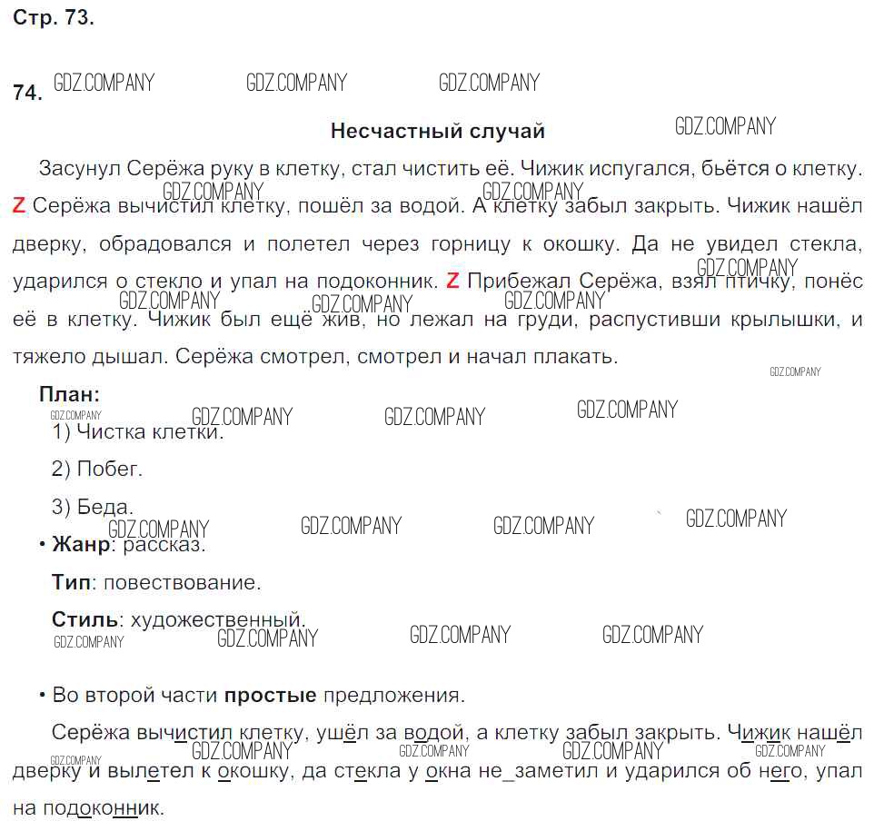 Здесь готовые ответы по Русскому языку за 4 (четвертый) класс от Песняева, Анащенкова Рабочая тетрадь УМК (издательство: Просвещение от 2017 г.) № 73