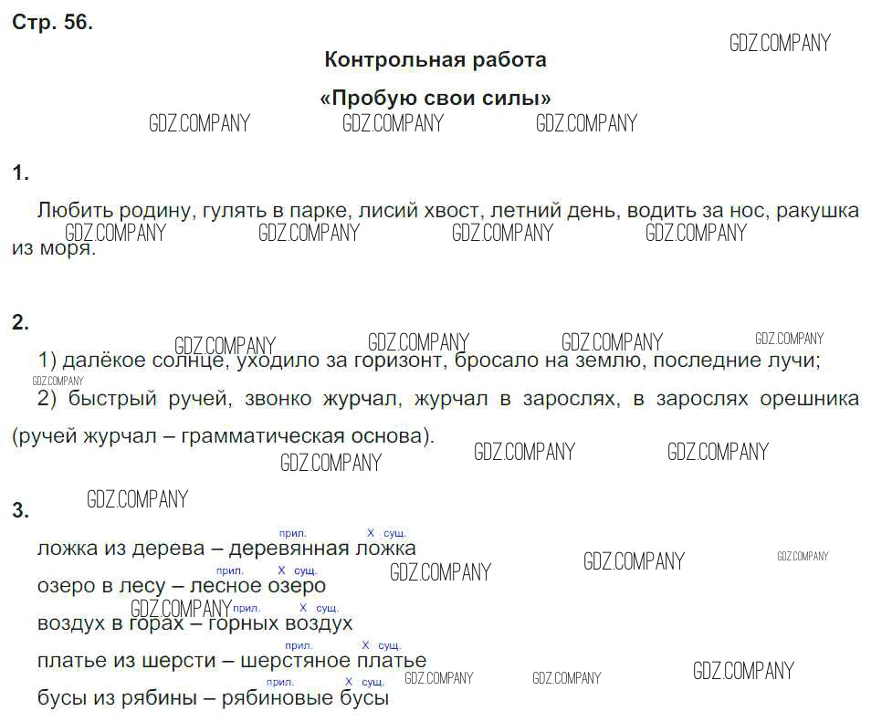 Здесь готовые ответы по Русскому языку за 4 (четвертый) класс от Романова, Петленко Тетрадь для контрольных работ Начальная школа XXI века (издательство: Вентана-граф от 2018 г.) № 56