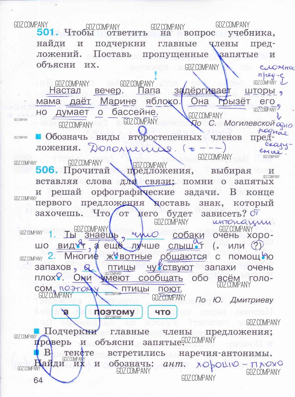 Здесь готовые ответы по Русскому языку за 4 (четвертый) класс от Соловейчик, Кузьменко Рабочая тетрадь Гармония (издательство: Ассоциация 21 век от 2012 г.) № 64