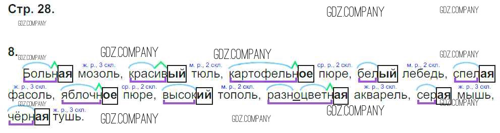 Здесь готовые ответы по Русскому языку за 4 (четвертый) класс от Тихомирова Рабочая тетрадь УМК (издательство: Экзамен от 2016 г.) № 28