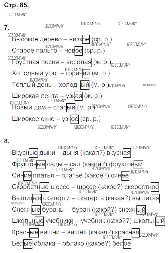 Здесь готовые ответы по Русскому языку за 4 (четвертый) класс от Тихомирова Рабочая тетрадь УМК (издательство: Экзамен от 2014 г.) № 85