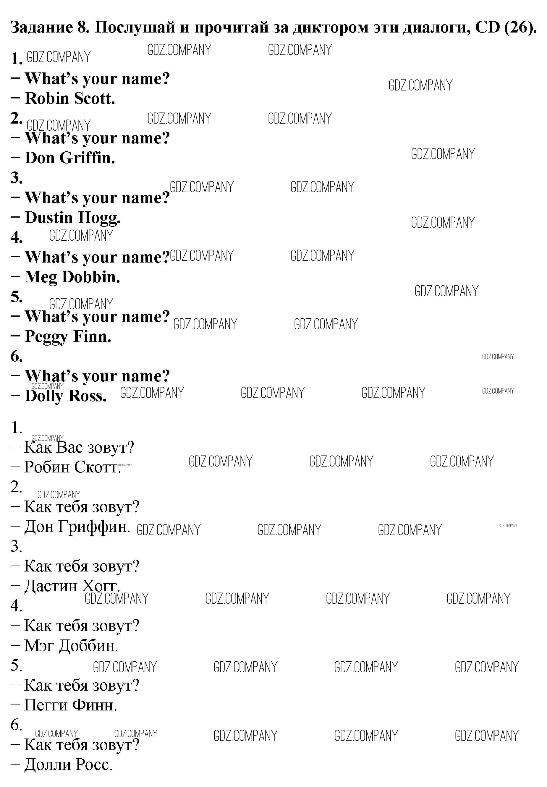 Здесь готовые ответы по Английскому языку за 5 (пятый) класс от Афанасьева, Михеева Учебник Новый курс (издательство: Дрофа от 2017 г.) № 8