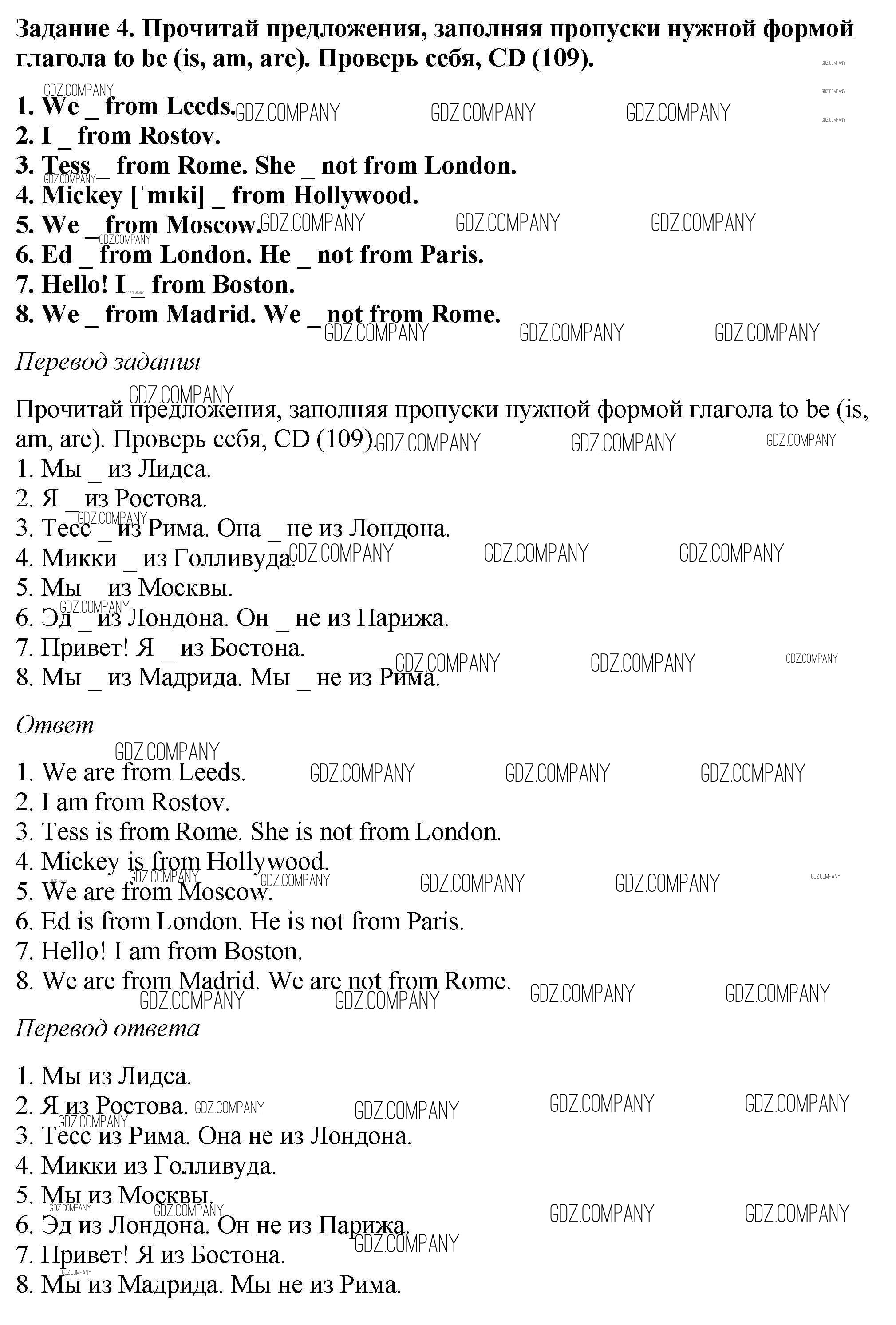 Здесь готовые ответы по Английскому языку за 5 (пятый) класс от Афанасьева, Михеева Учебник Новый курс (издательство: Дрофа от 2017 г.) № 4