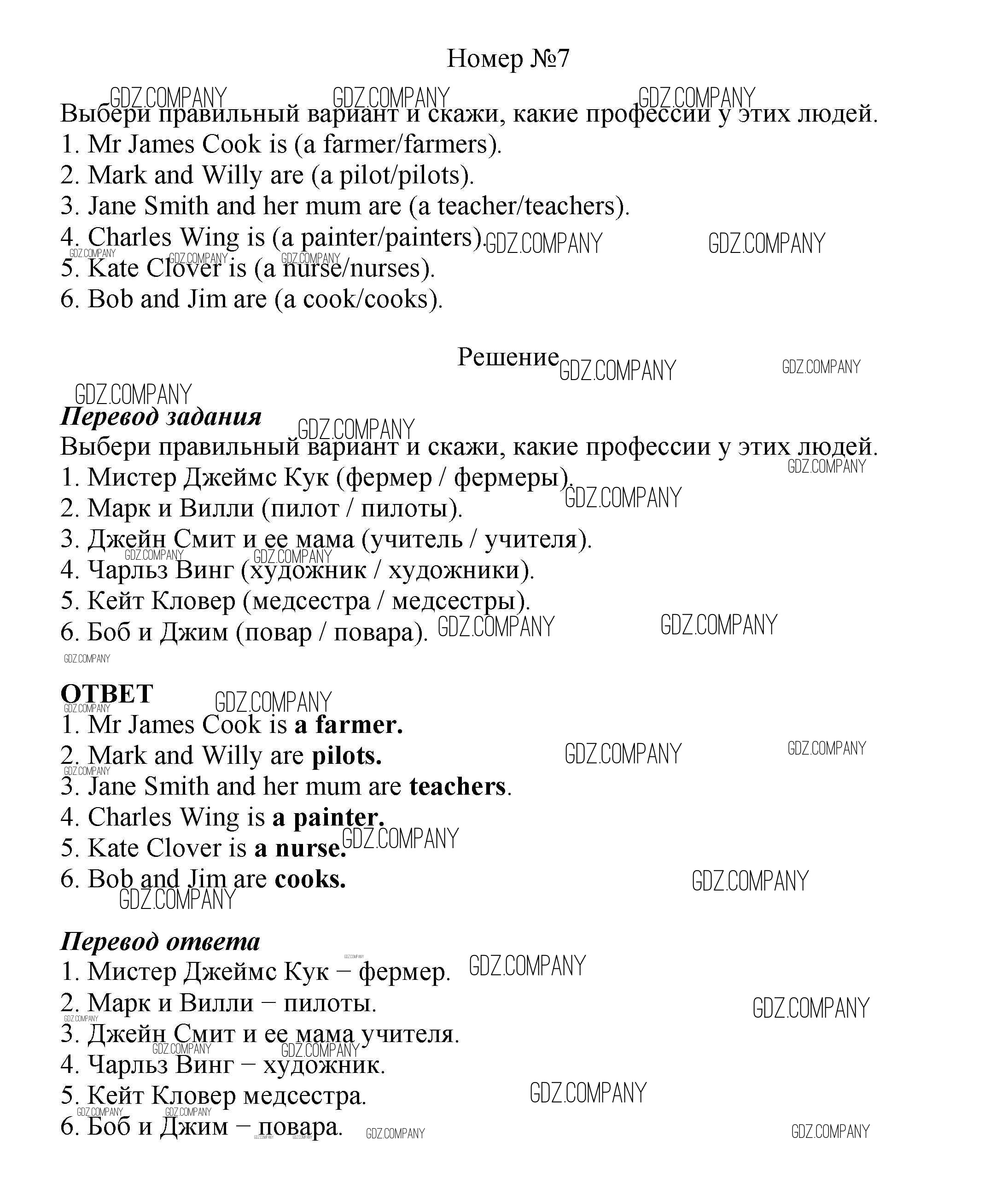 Здесь готовые ответы по Английскому языку за 5 (пятый) класс от Афанасьева, Михеева Учебник Новый курс (издательство: Дрофа от 2017 г.) № 7