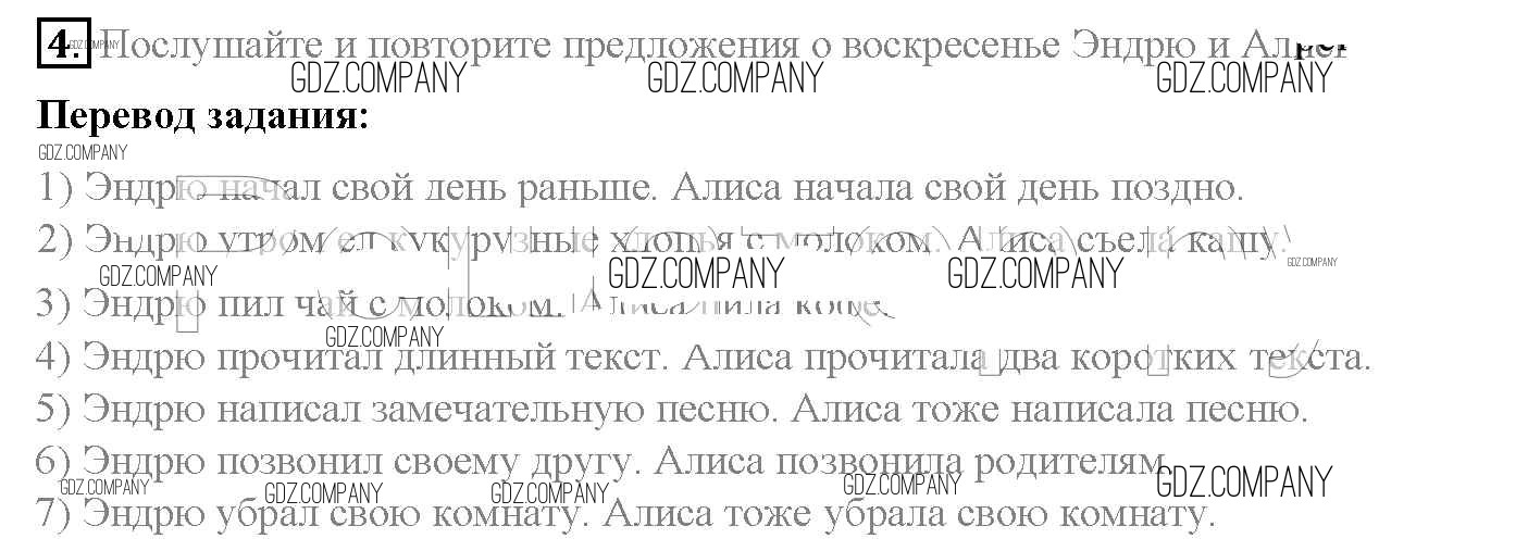 Здесь готовые ответы по Английскому языку за 5 (пятый) класс от Афанасьева, Михеева, Баранова Учебник Rainbow (издательство: Дрофа от 2017 г.) № 4