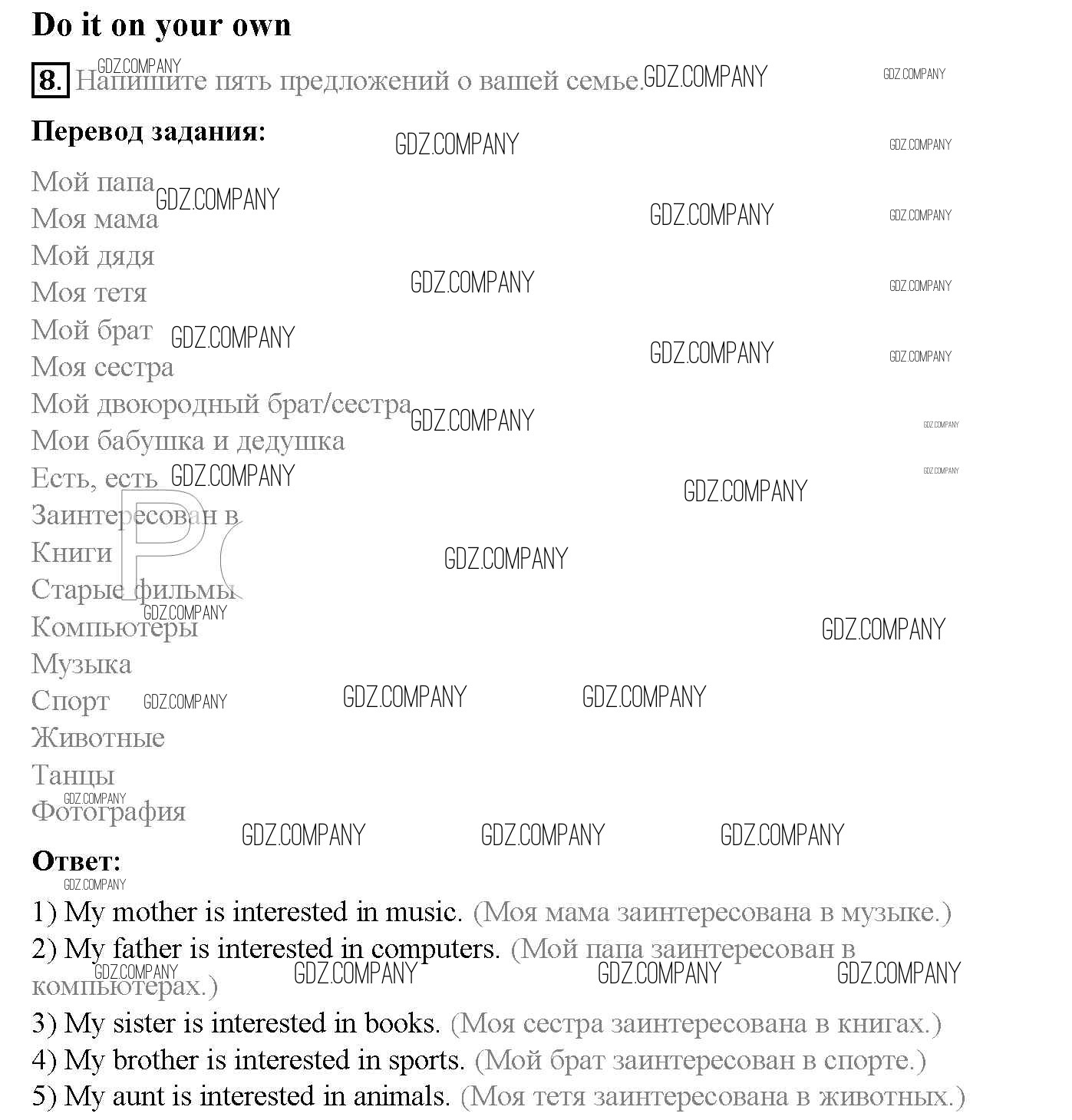 Здесь готовые ответы по Английскому языку за 5 (пятый) класс от Афанасьева, Михеева, Баранова Учебник Rainbow (издательство: Дрофа от 2017 г.) № 8