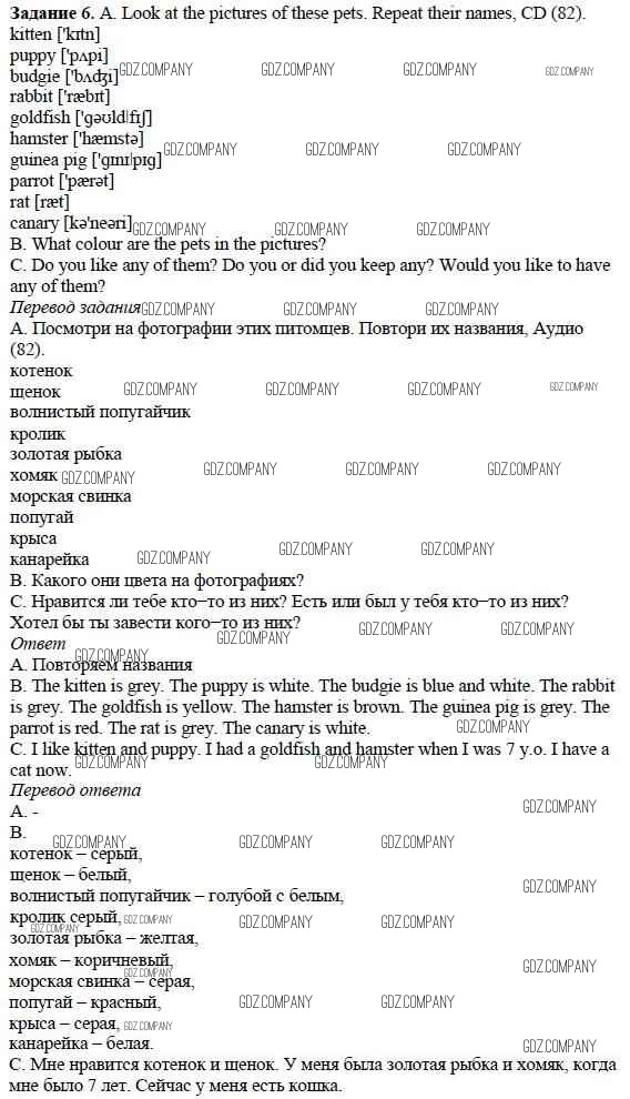 Здесь готовые ответы по Английскому языку за 5 (пятый) класс от Афанасьева, Михеева, Баранова Учебник Rainbow (издательство: Дрофа от 2017 г.) № 6