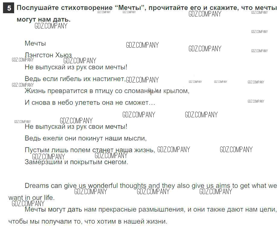 Здесь готовые ответы по Английскому языку за 5 (пятый) класс от Афанасьева, Михеева, Баранова Учебник Rainbow (издательство: Дрофа от 2017 г.) № 5