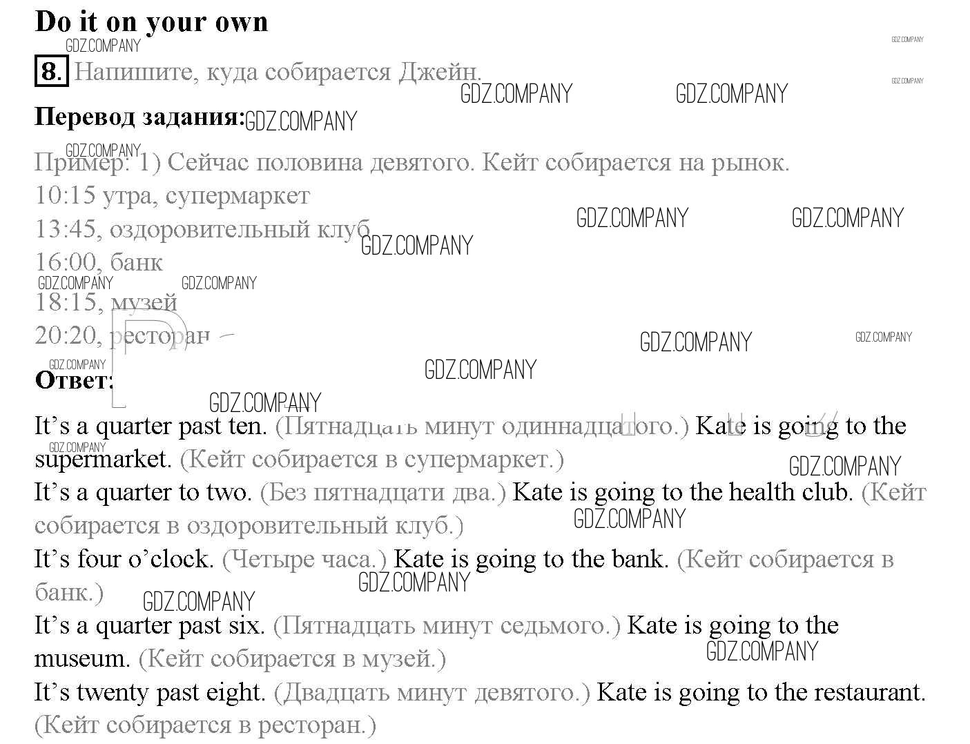 Здесь готовые ответы по Английскому языку за 5 (пятый) класс от Афанасьева, Михеева, Баранова Учебник Rainbow (издательство: Дрофа от 2017 г.) № 8