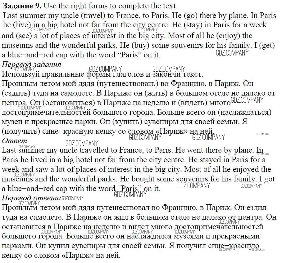 Здесь готовые ответы по Английскому языку за 5 (пятый) класс от Афанасьева, Михеева, Баранова Учебник Rainbow (издательство: Дрофа от 2017 г.) № 9