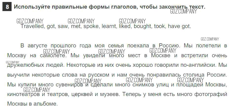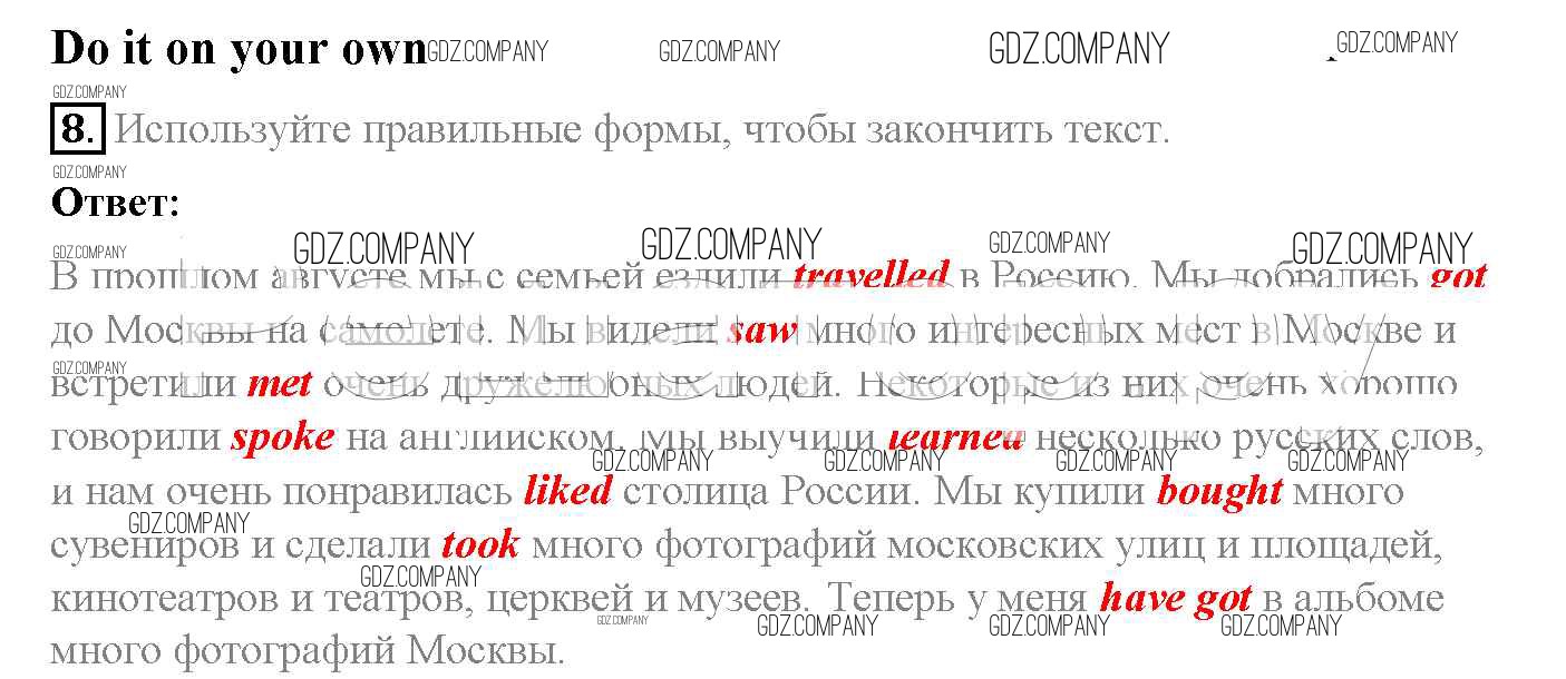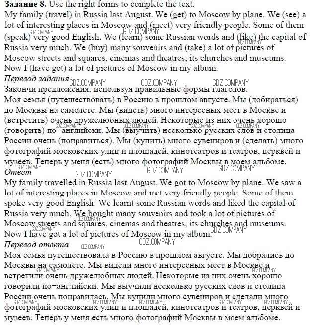 Здесь готовые ответы по Английскому языку за 5 (пятый) класс от Афанасьева, Михеева, Баранова Учебник Rainbow (издательство: Дрофа от 2017 г.) № 8