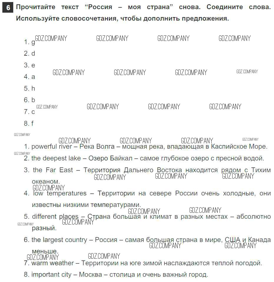 Здесь готовые ответы по Английскому языку за 5 (пятый) класс от Афанасьева, Михеева, Баранова Учебник Rainbow (издательство: Дрофа от 2017 г.) № 6