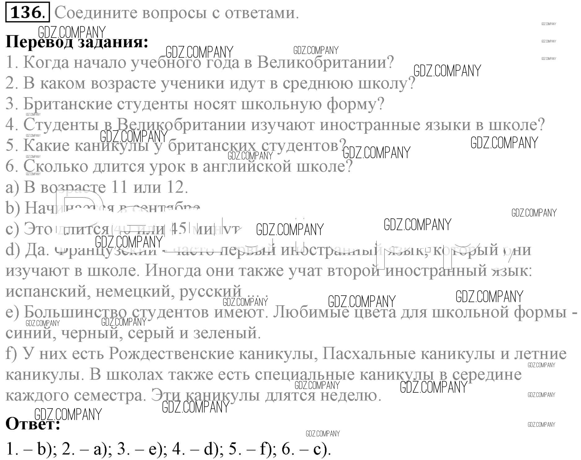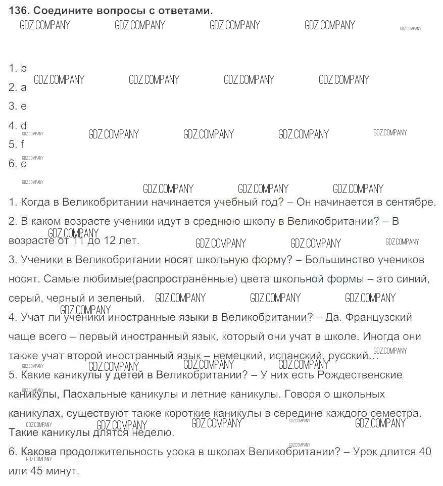 Здесь готовые ответы по Английскому языку за 5 (пятый) класс от Биболетова, Денисенко, Трубанева Учебник Enjoy English (издательство: Титул от 2015 г.) № 136