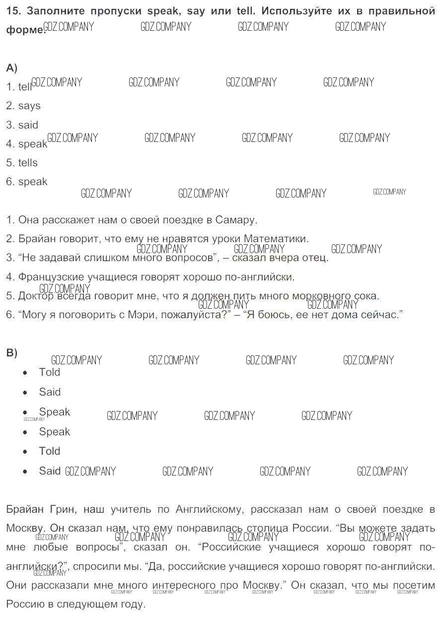 Здесь готовые ответы по Английскому языку за 5 (пятый) класс от Биболетова, Денисенко, Трубанева Учебник Enjoy English (издательство: Титул от 2015 г.) № 15