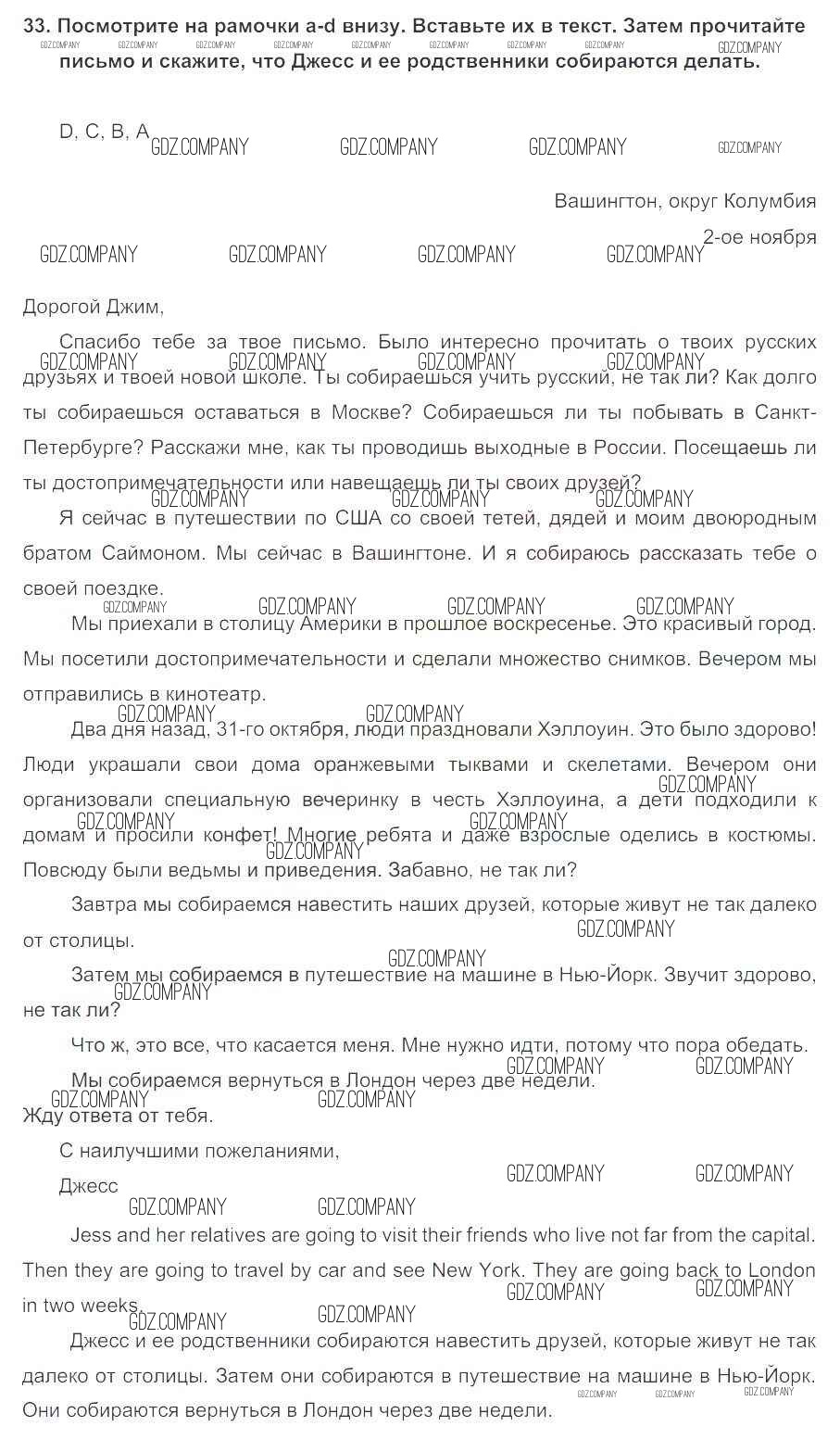 Здесь готовые ответы по Английскому языку за 5 (пятый) класс от Биболетова, Денисенко, Трубанева Учебник Enjoy English (издательство: Титул от 2015 г.) № 33