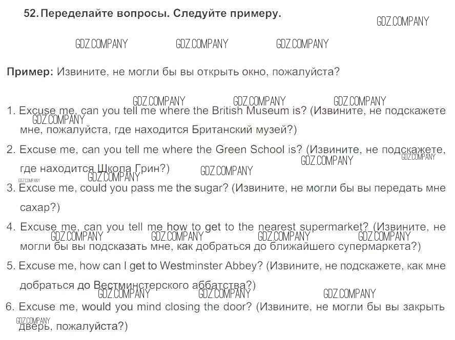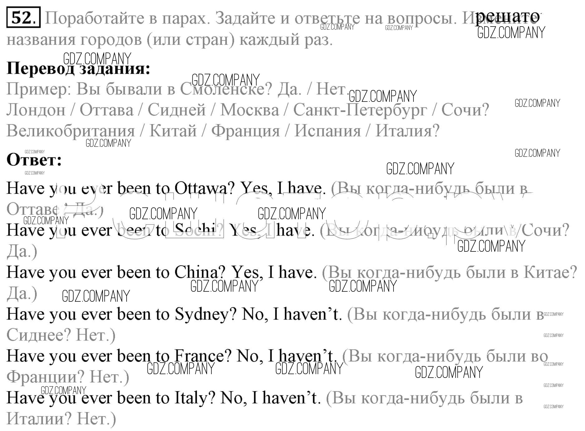 Здесь готовые ответы по Английскому языку за 5 (пятый) класс от Биболетова, Денисенко, Трубанева Учебник Enjoy English (издательство: Титул от 2015 г.) № 52