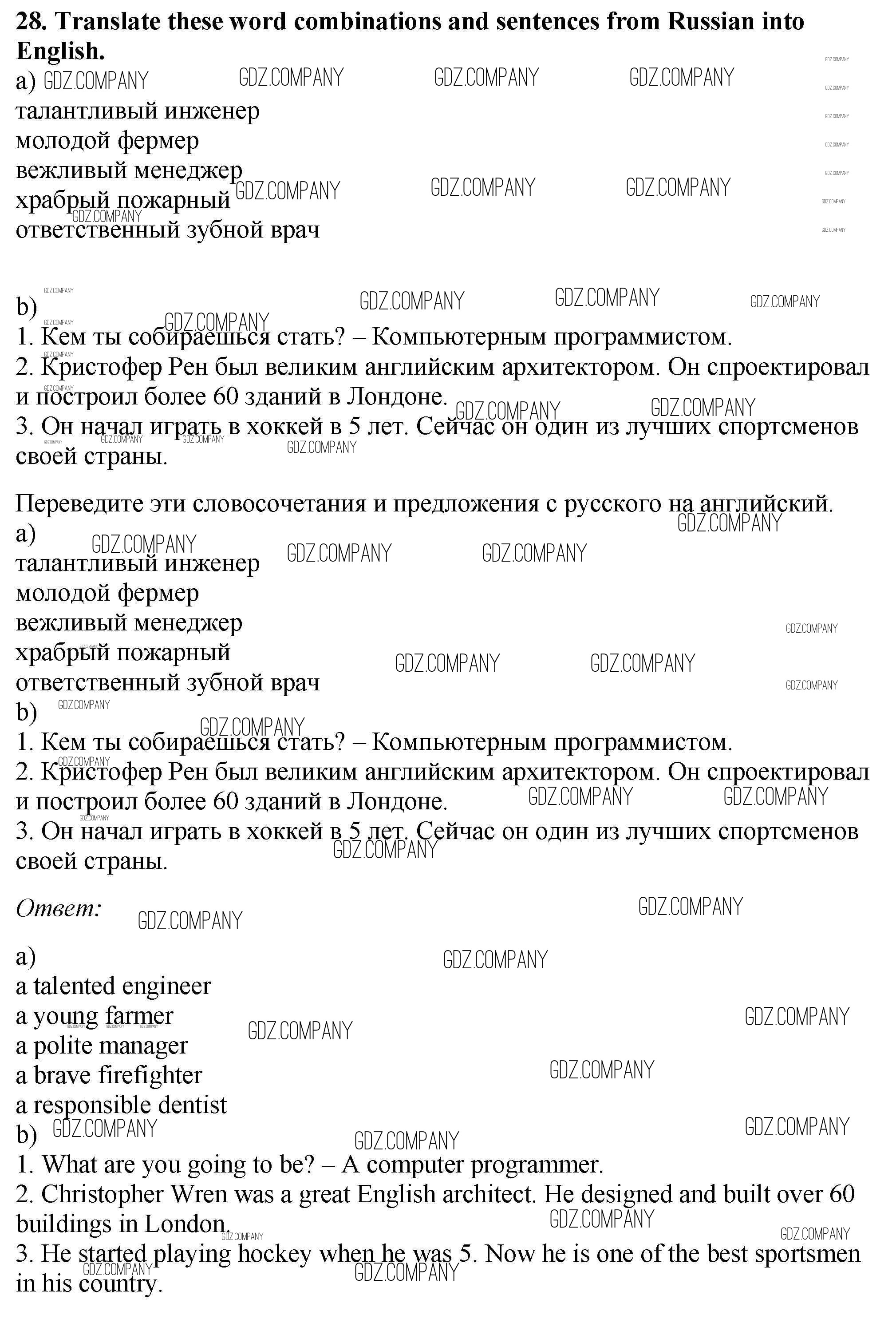 Здесь готовые ответы по Английскому языку за 5 (пятый) класс от Биболетова, Денисенко, Трубанева Рабочая тетрадь Enjoy English (издательство: Дрофа от 2019 г.) № 28