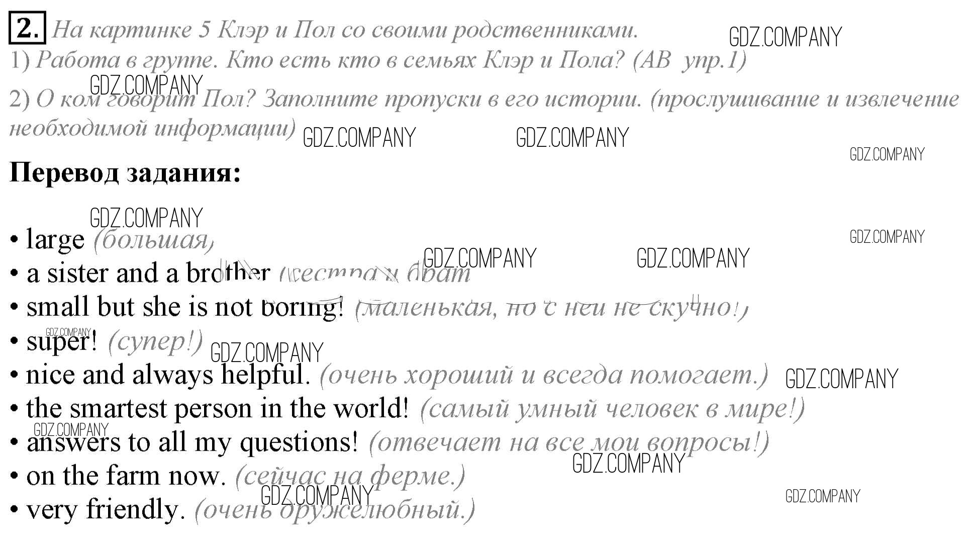 Здесь готовые ответы по Английскому языку за 5 (пятый) класс от Кузовлев, Лапа, Костина, Дуванова, Кузнецова Учебник УМК (издательство: Просвещение от 2015 г.) № 2