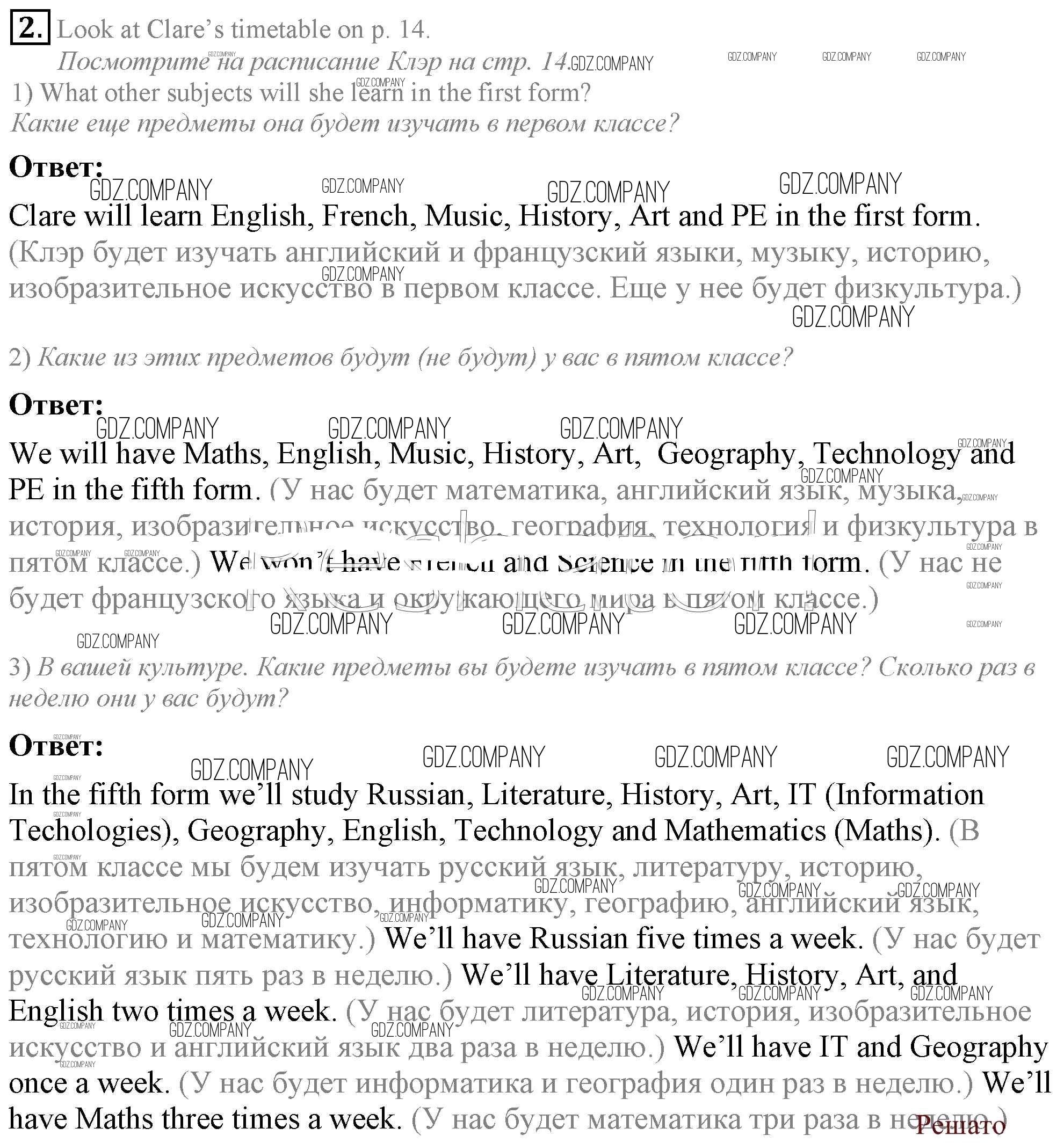 Здесь готовые ответы по Английскому языку за 5 (пятый) класс от Кузовлев, Лапа, Костина, Дуванова, Кузнецова Учебник УМК (издательство: Просвещение от 2015 г.) № 2