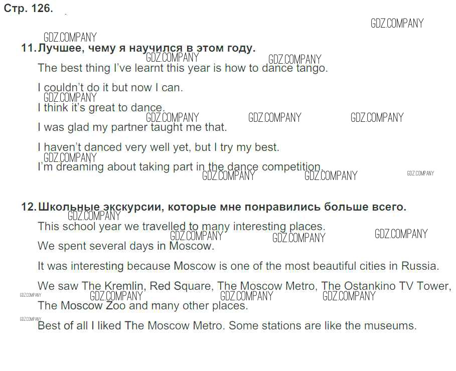 Здесь готовые ответы по Английскому языку за 5 (пятый) класс от Кузовлев, Лапа, Костина, Дуванова, Кузнецова Рабочая тетрадь Академический школьный учебник (издательство: Просвещение от 2013 г.) № стр. 126