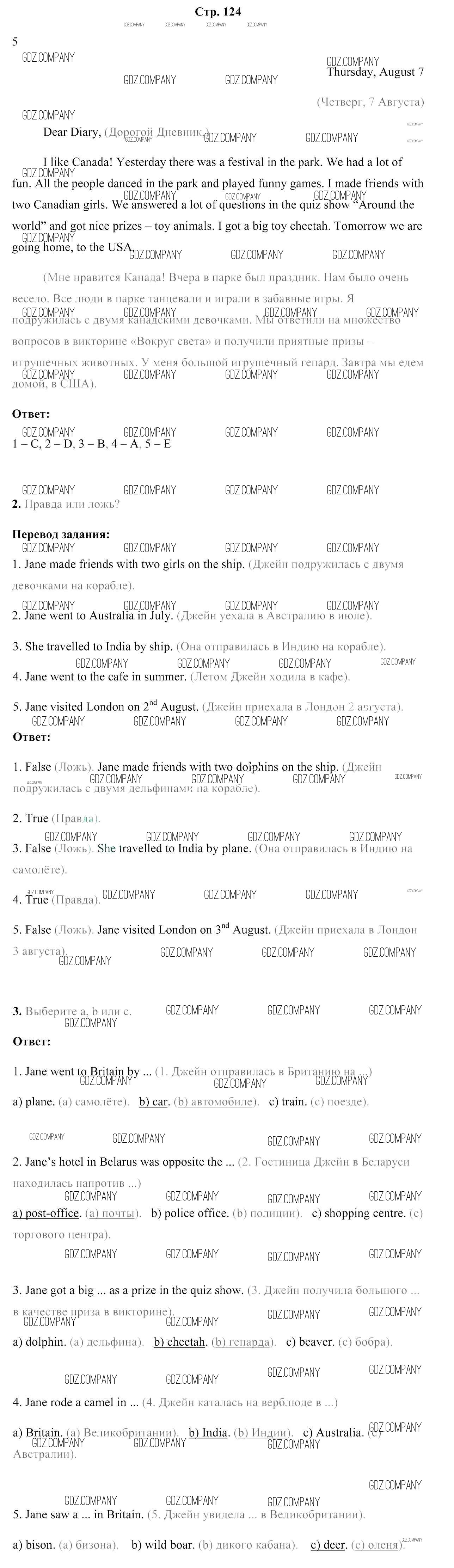 Здесь готовые ответы по Английскому языку за 5 (пятый) класс от Лапицкая, Калишевич, Севрюкова, Седунова Учебник (издательство: Народная асвета от 2020 г.) № 124