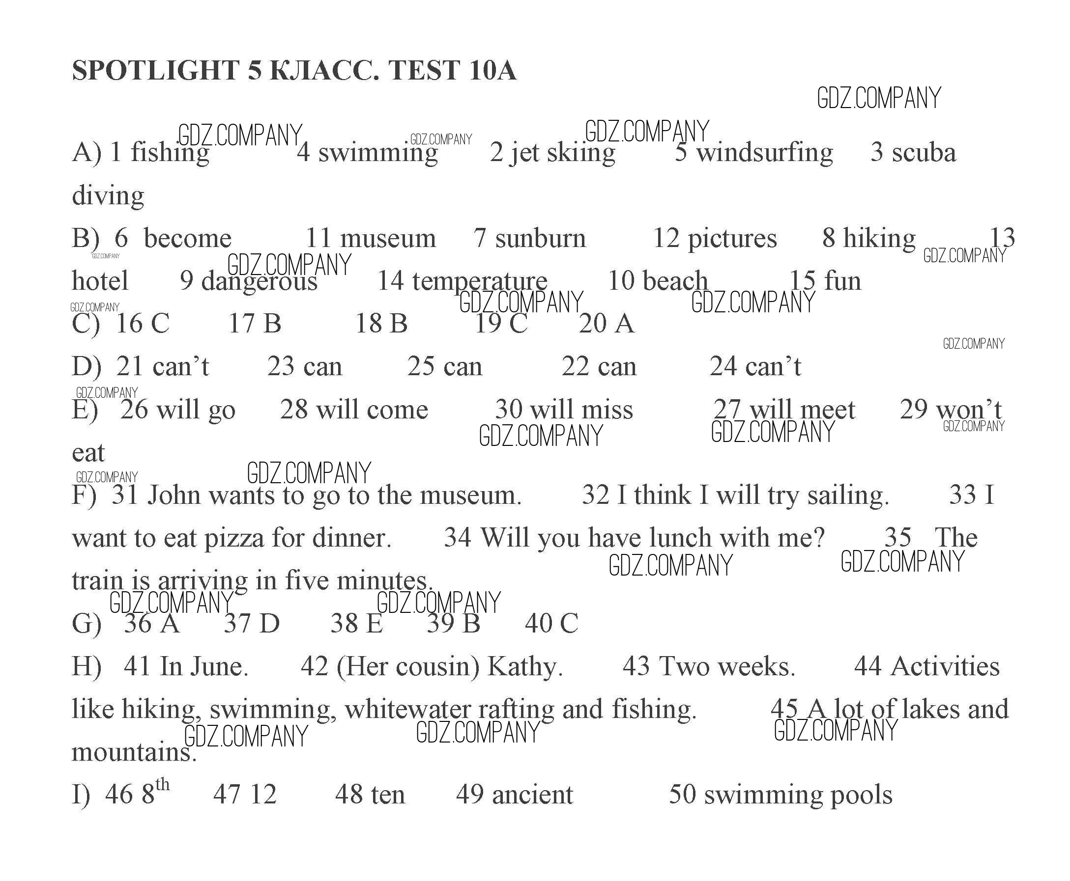 Здесь готовые ответы по Английскому языку за 5 (пятый) класс от Ваулина, Дули, Подоляко, Эванс Контрольные задания Spotlight (издательство: Просвещение от 2008 г.) № A