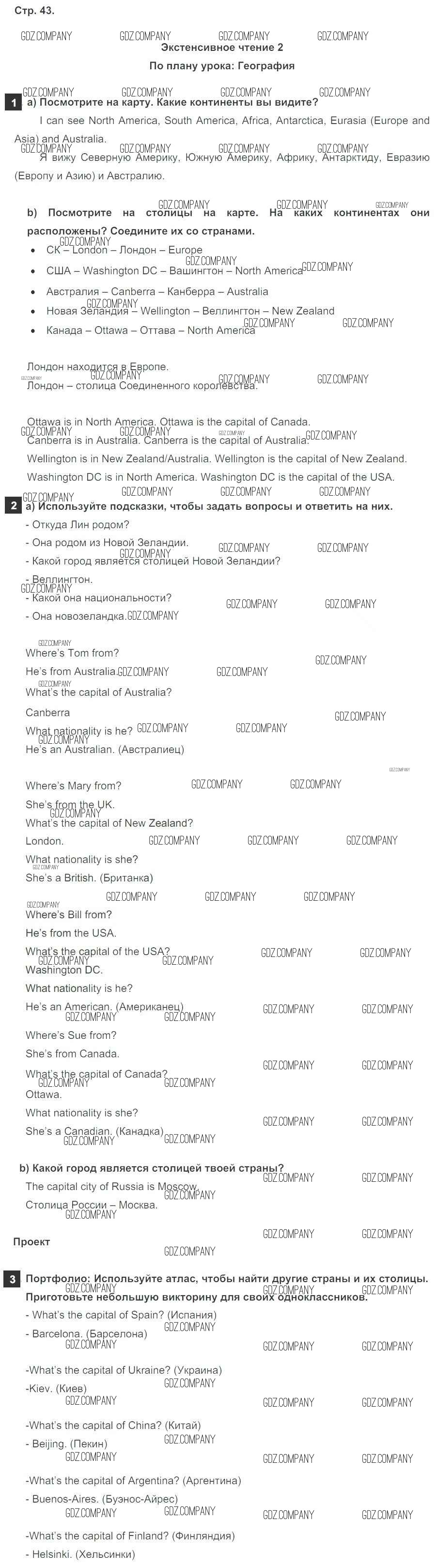 Здесь готовые ответы по Английскому языку за 5 (пятый) класс от Ваулина, Дули, Подоляко, Эванск Учебник Spotlight (издательство: Просвещение от 2015 г.) № стр. 43