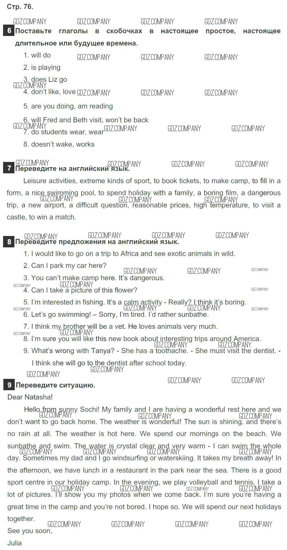 Здесь готовые ответы по Английскому языку за 5 (пятый) класс от Ваулина, Дули, Подоляко, Эванск Рабочая тетрадь Spotlight (издательство: Просвещение от 2016 г.) № 76