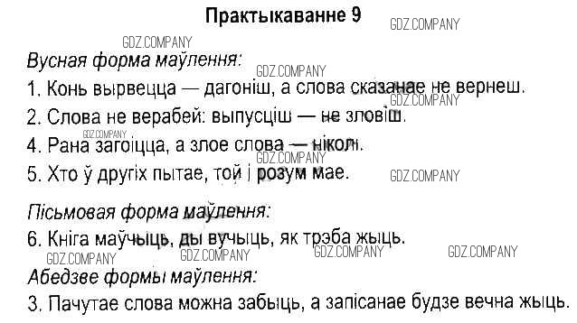 Здесь готовые ответы по Белорусскому языку за 5 (пятый) класс от Красней, Несцяровіч, Васюковіч, Лаурель Учебник (издательство: Национальный институт образования от 2014 г.) № 9
