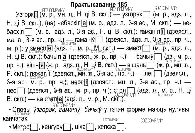 Здесь готовые ответы по Белорусскому языку за 5 (пятый) класс от Красней, Несцяровіч, Васюковіч, Лаурель Учебник (издательство: Национальный институт образования от 2014 г.) № 185