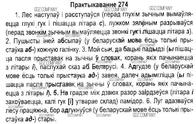 Здесь готовые ответы по Белорусскому языку за 5 (пятый) класс от Красней, Несцяровіч, Васюковіч, Лаурель Учебник (издательство: Национальный институт образования от 2014 г.) № 274