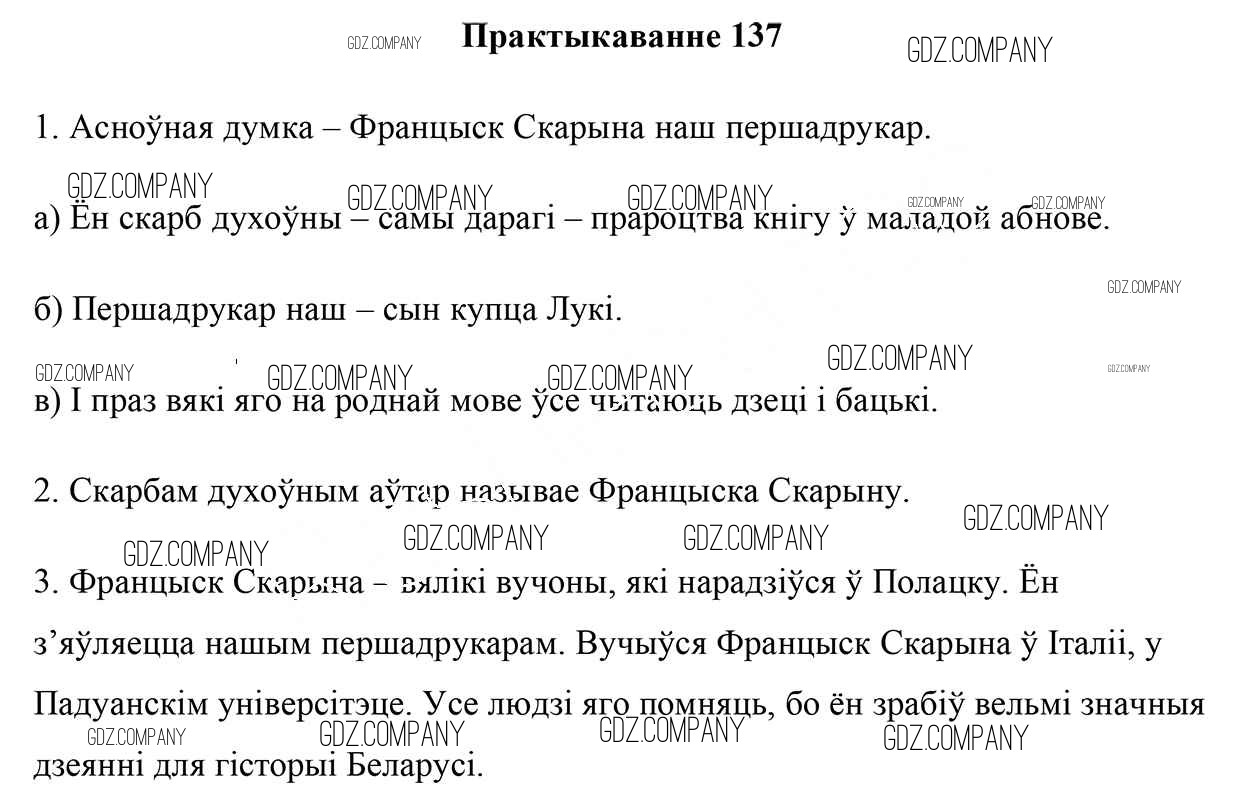 Здесь готовые ответы по Белорусскому языку за 5 (пятый) класс от Валочка, Зелянко, Мартынкевіч, Якуба Учебник (издательство: Национальный институт образования от 2019 г.) № 137