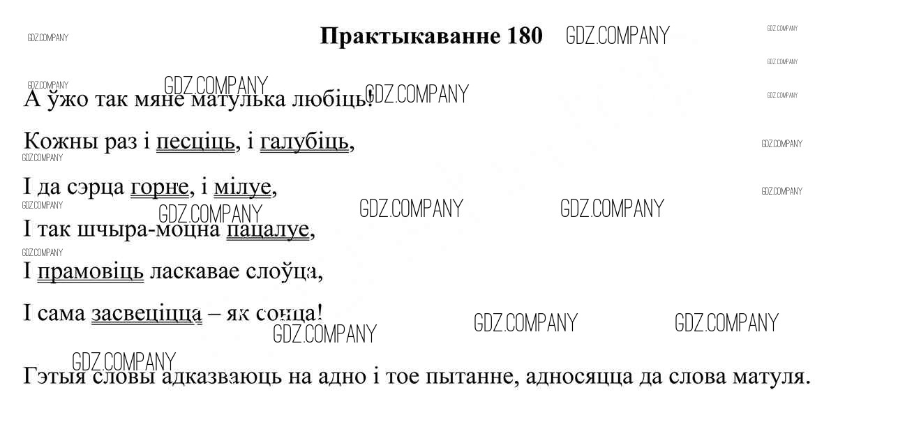Здесь готовые ответы по Белорусскому языку за 5 (пятый) класс от Валочка, Зелянко, Мартынкевіч, Якуба Учебник (издательство: Национальный институт образования от 2019 г.) № 180