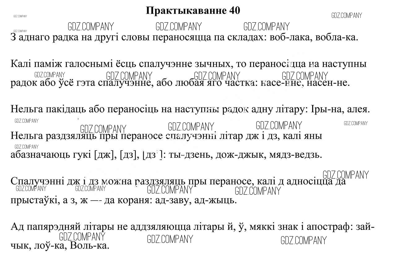 Здесь готовые ответы по Белорусскому языку за 5 (пятый) класс от Валочка, Зелянко, Мартынкевіч, Якуба Учебник (издательство: Национальный институт образования от 2019 г.) № 40