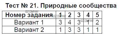 Здесь готовые ответы по Биологии за 5 (пятый) класс от Богданов Тесты УМК (издательство: Экзамен от 2017 г.) № Тест №21. Природные сообщества