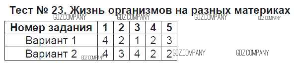 Здесь готовые ответы по Биологии за 5 (пятый) класс от Богданов Тесты УМК (издательство: Экзамен от 2017 г.) № Тест №23. Жизнь организмов на разных материках