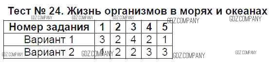 Здесь готовые ответы по Биологии за 5 (пятый) класс от Богданов Тесты УМК (издательство: Экзамен от 2017 г.) № Тест №24. Жизнь организмов в морях и океанах