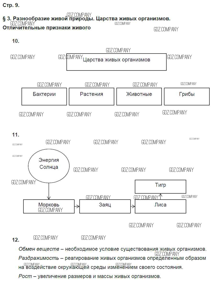 Здесь готовые ответы по Биологии за 5 (пятый) класс от Пасечник Рабочая тетрадь Вертикаль (издательство: Дрофа от 2015 г.) № стр. 9